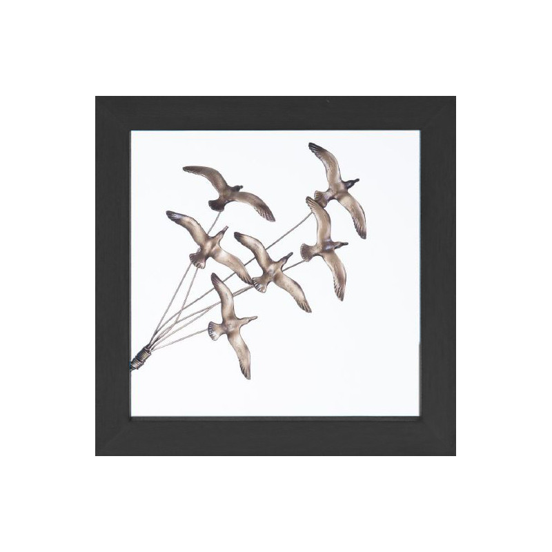 There is a fastening ring placed behind the frame so it can be hanged on the wall, but it can also simply be placed on a piece of furniture, a shelf, etc... Beautiful shadows can be seen when hanged.