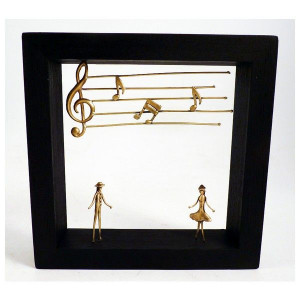 The poetic and romantic universe of this talented sculptor attracts the look and often touches right in the heart. Every original work of this collection is made in bronze and is stamped to protect its authenticity. It has a catcher placed behind the frame so it can be hanged on the wall, but can also simply be placed on a piece of furniture, a shelf, etc.... George Roumanas hails from Petrítsi, a village in Southern Greece renowned for its idyllic environs. Like the artists who flock there from around the world, George is influenced by his lush surroundings, as well as the imaginative work and creativity of the makers who call Petrítsi home. The self-taught artist brings common experiences, concepts, and emotions - love, dance, music, family - to life by combining wood, stone, and other natural materials with manmade ones, like glass and bronze.