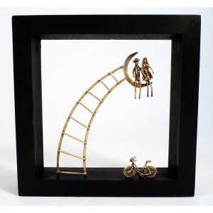 This bronze sculpture framed with black painted wood is a unique and original creation of the Greek artist Georges Roumanas.