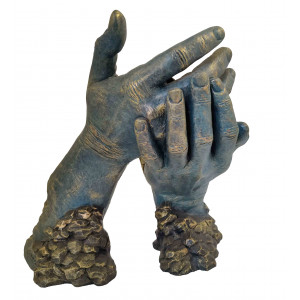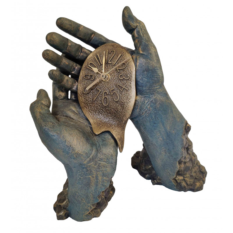 "Time flies" clock sculpture by Maria Anglada - Verdigris finish