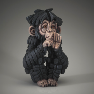 This contemporary animal sculpture, in the modern and graphic lines, represents a chimpanzee cub. It is an original work of the English workshop Edge.