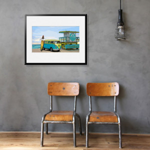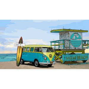 Philippe Matine offers a pretty atmospheres reworked in a comic book spirit. Whether you are a fan of Volkswagen Combi or attracted by the Miami Beach atmosphere, you can only appreciate this painting!