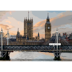 Philippe Matine offers a pretty atmospheres reworked in a comic book spirit. Here, the British Parliament and Big Ben, in London, are depicted by the artist.