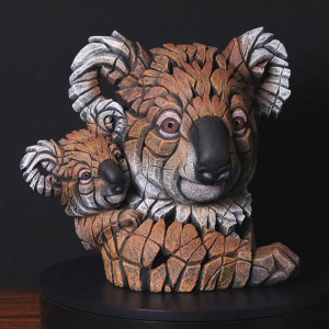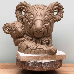 This sculpture of a brown koala with baby koala, in the modern and graphic lines, is an original work of the English artist Matt Buckley.