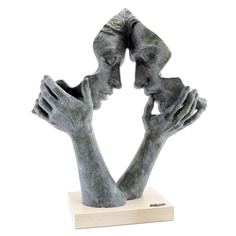 Measuring 40 cm in height, it represents a couple whose faces are close together. The hand of one brushes the face of the other. This piece offers a geometric and symmetrical effect that is both very aesthetic and original.