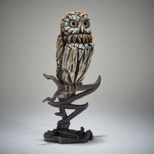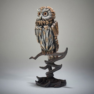 This contemporary animal sculpture, in the modern and graphic lines, represents a owl on a branch. It is an original work of the English workshop Edge.
